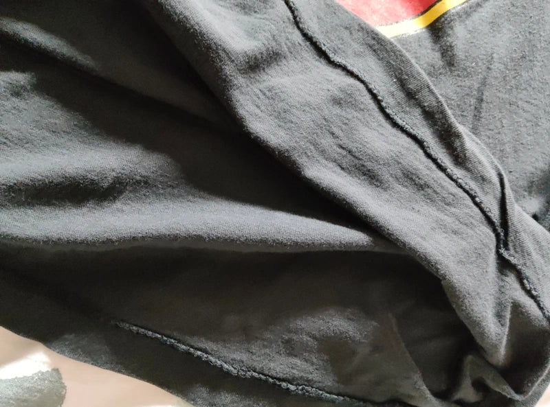 Une pièce de collection pour les puristes des bandes dessinées et du vintage ! Ce T-shirt Noir des Simpson date du tout début des années 90, comme l'atteste sa fabrication Single Stitch (couture simple), extrêmement rare sur les produits de licence après 1993.